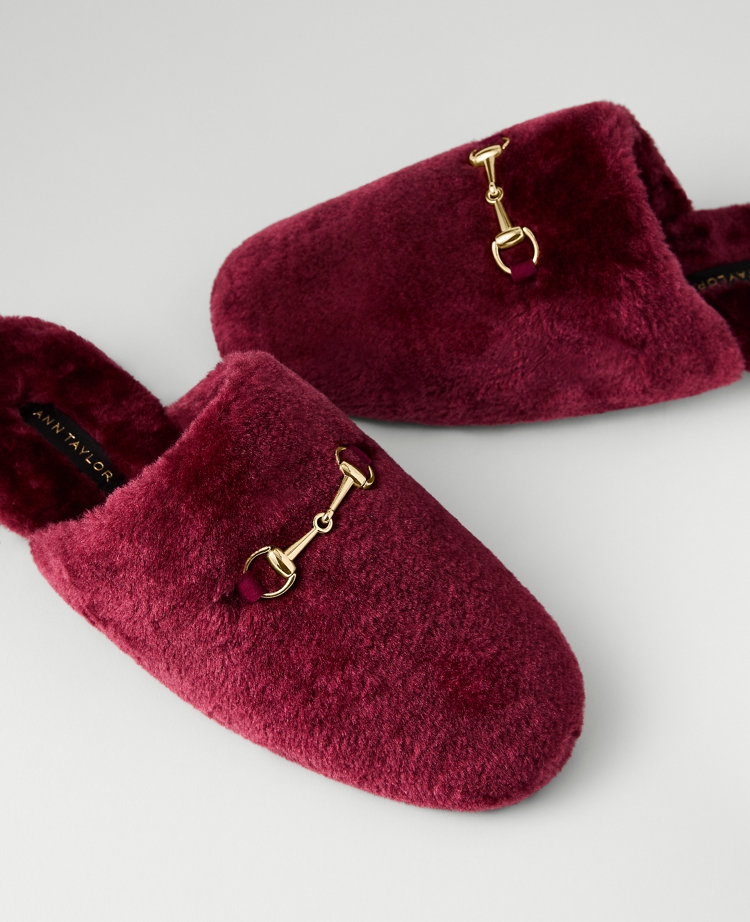 Weekend Collection Horsebit Fuzzy Slide Flat