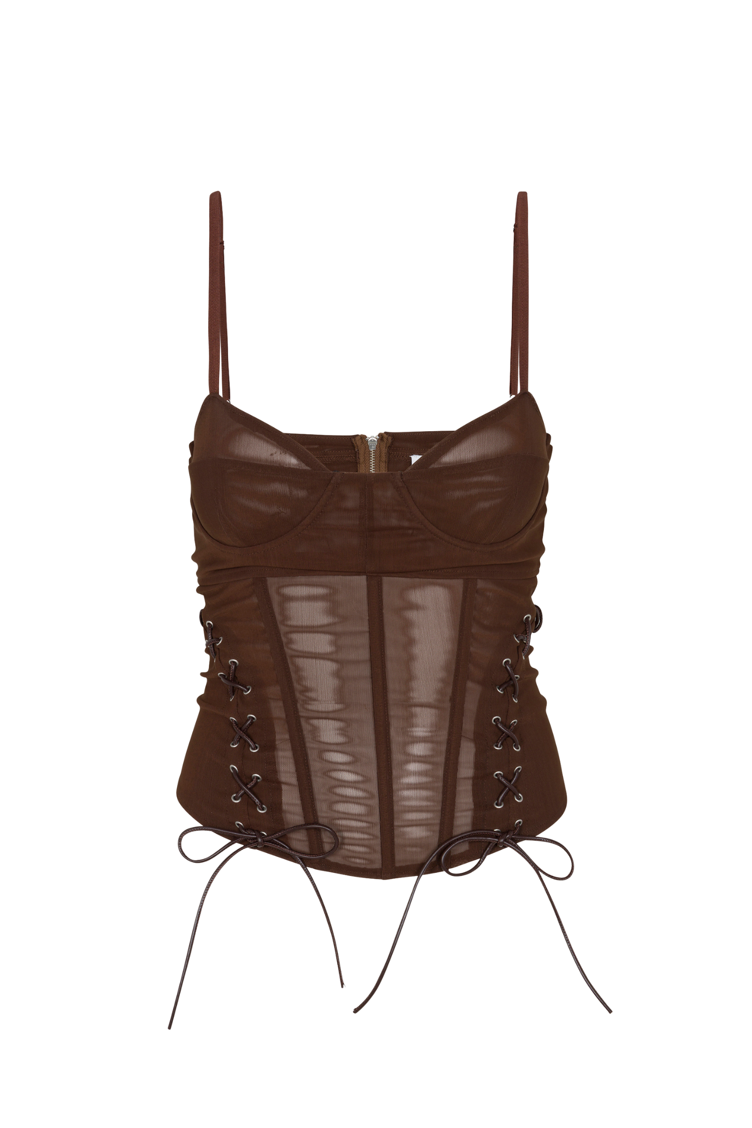 The Christina Corset is back in chocolate. With a built-in underwire bra and adjustable straps. it’s the perfect fit for you. Crafted from our most form-fitting mesh. it was made for you.