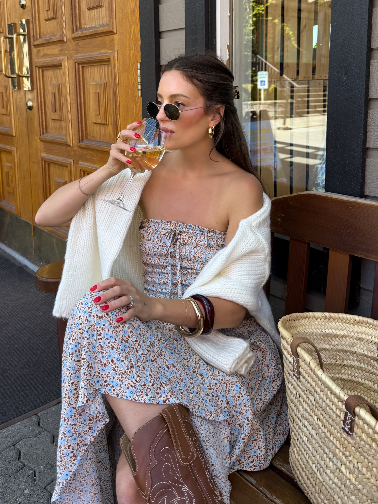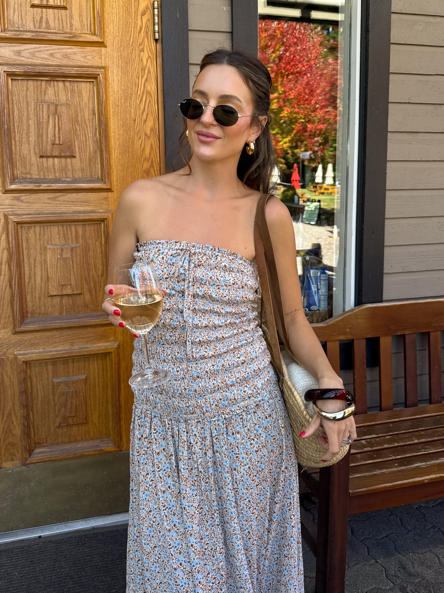 Introducing our NEW Devon Smocked Maxi Dress! This style features a flattering smocked bodice silhouette with a floral print that compliments all our S&F babes! Throw on some brown sandals. vegan suede bag. and a sweater styled over for your next wine tasting with the girls! Accessorize with gold jewelry and sunnies to complete the look.