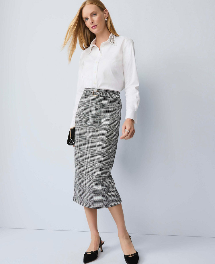 We love the classic appeal of a crisp button-down, especially in a relaxed silhouette. Designed with an embellished collar, this shirt sparkles from day to night. Point collar. Long sleeves with button cuffs. Button front. Back yoke with box pleat. Shirttail hem.
