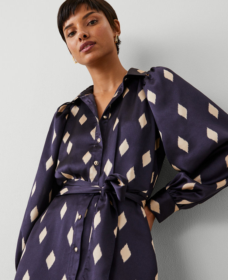 Versatile and endlessly flattering, our belted shirtdress is truly one and done – just cinch and go. Point collar. Long sleeves with shirred sleeve caps and button cuffs. Button front. Self tie belt. Front off-seam pockets. Back yoke with locker loop. Lined body.