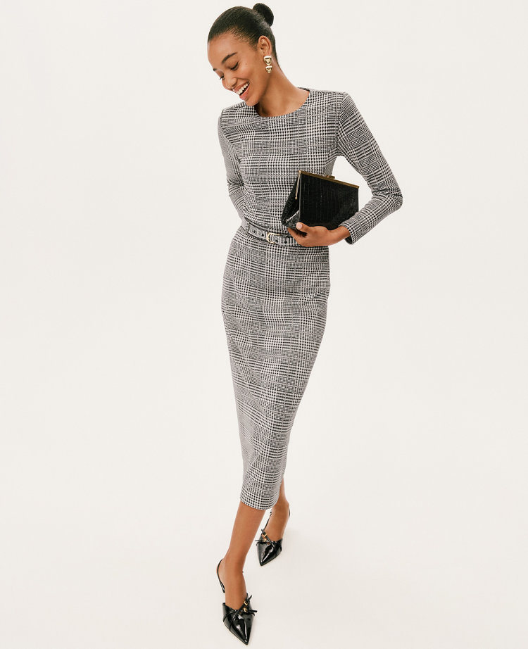 You’ll wear this belted pencil skirt for years to come, thanks to its flattering midi length and streamlined silhouette. Belt loops with adjustable buckle belt. Hidden back zip with a hook-and-eye closure. Back vent.