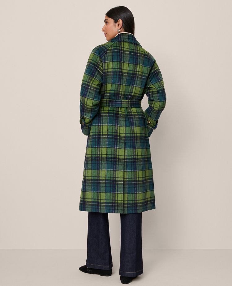 With tailored touches and a flattering belted silhouette, our trench coat will keep you warm and looking chic. Notched lapel. Long sleeves with button tabs. Double breasted button front. Belt loops. Self tie buckle belt. Angled front flap welt pockets. Back vent. Lined.