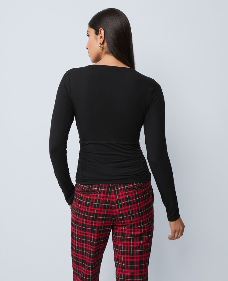 Ruffles frame this polished, fluid blouse with a touch of romance. Stand collar. Front button closures. Short puff sleeves with button cuffs. Shirttail hem.