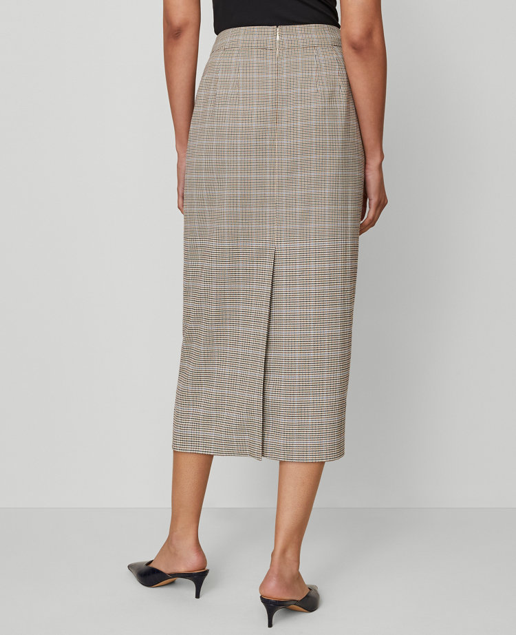 Beautifully fitted, our plaid pencil skirt styles a streamlined silhouette. Hidden back zipper with hook-and-eye closure. Back vent. Lined.