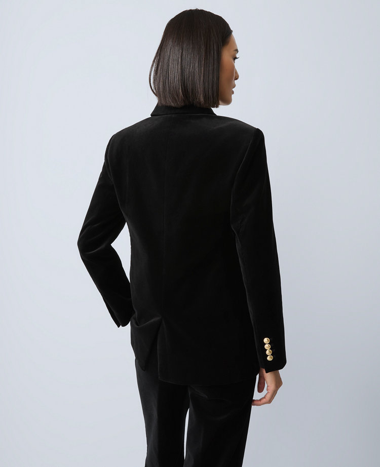 We love this modern update on the classic double-breasted style — with a more tailored fit that always looks pulled together. Notched lapels. Double-breasted button front. Long sleeves with button cuffs. Front flap besom pockets. Back vent. Lined.
