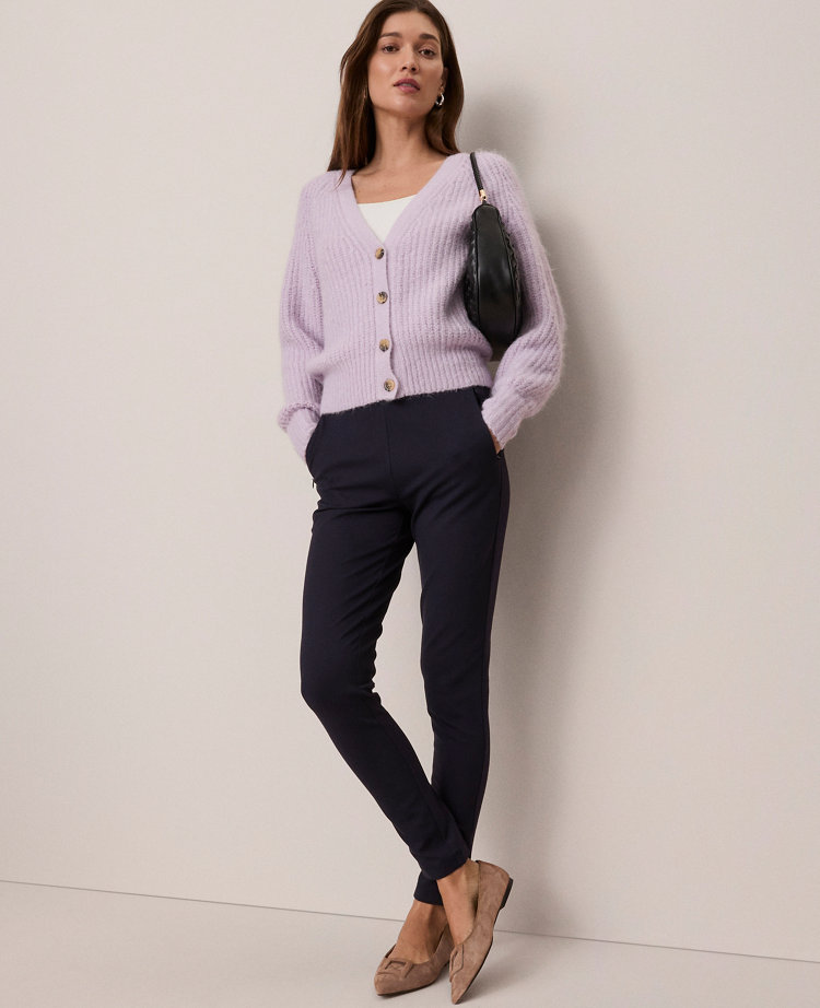 Discover Ann Taylor Weekend. Effortlessly polished, lived-in looks for wherever your plans take you. Elevated and versatile, this wardrobe staple takes you from the office to the weekend with ease. V-neck. Ribbed cuffs and hem. Front button closures. Long sleeves.